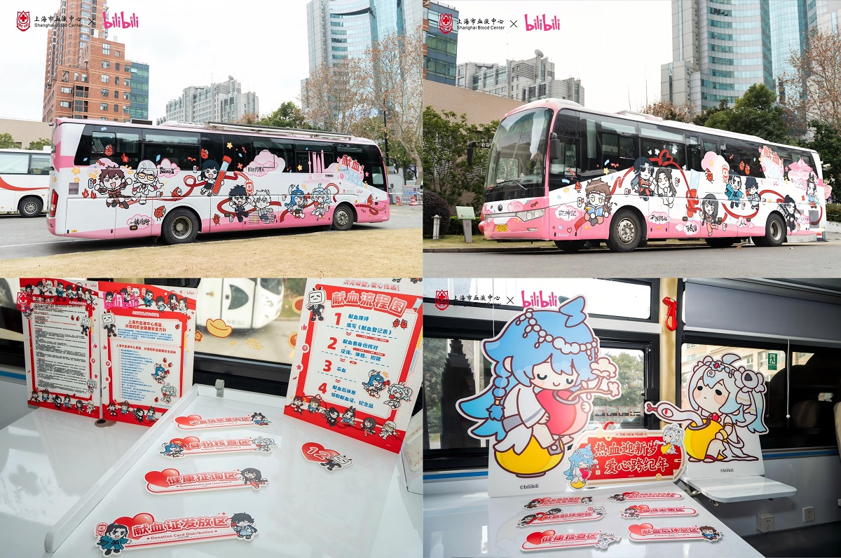 2025年新年伊始,B站×上海市血液中心的IP主题献血车闪亮登场,车身融入上海市地标建筑及B站小电视、2233娘及十多位国创IP人气角色的Q萌形象,车内的相关说明引导标识同样焕新为IP主题,使整辆献血车既洋溢着青春活力,又不失温暖爱心。配合后续多轮IP主题活动,B站主题献血车全年在豫园等上海市各大人流密集献血点流动执勤,成为一道独属于“魔都”的二次元爱心风景线,吸引了广大市民与外地游客驻足打卡、献上热血。