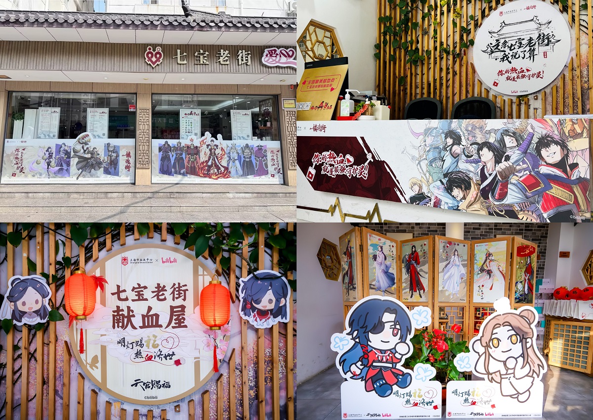 《天官赐福》《镇魂街》等国风IP联动上线之际,在七宝老街等特色献血点,更进行了IP主题的软装升级,打造“公益献血+IP打卡”的沉浸式体验,有效提升公益参与感。