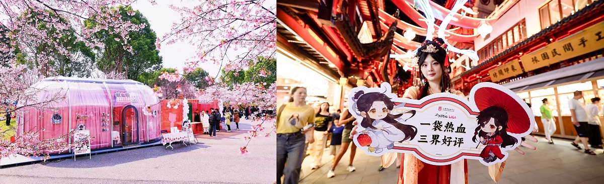 活动也吸引大量粉丝参与献血,并在各平台自发发布返图、分享体验,形成“IP 粉丝→公益参与者→口碑传播者”的转化链条。顾村樱花节期间的《镇魂街》主题献血泡泡屋、上海市血液中心校园行期间的《时光代理人》联合参与以及豫园“国创豫宙漫游季”的《天官赐福》动画场景联动,也进一步激发群众自发传播热情,让公益影响力持续扩散。