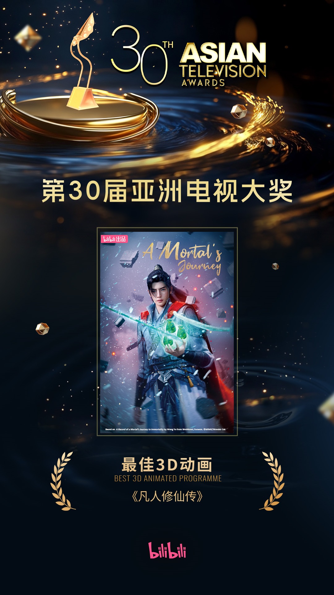 2025年11月29日 – 第30届亚洲电视大奖颁奖典礼近日在印尼雅加达圆满落幕,哔哩哔哩(B站)多部作品表现不俗,其中国创动画《凡人修仙传》荣获最佳3D动画大奖,延续了该作品自发布以来在国内外的高口碑与影响力。同时,B站出品2部纪录片斩获殊荣,共计入围8项提名,涵盖最佳系列纪录片、最佳系列纪录片(OTT平台)、最佳社会认知节目、最佳自然历史或野生动物节目等多个重要类别,展现了中国数字内容在国际舞台上的综合实力。