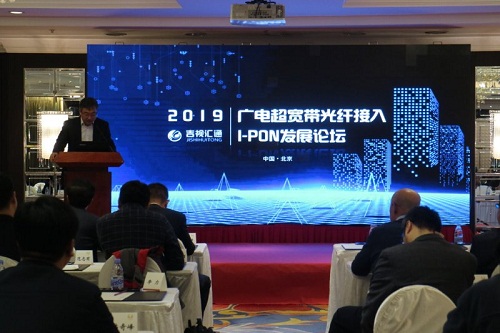 2019年3月21日,正值第27届中国国际广播电视信息网络展览会期间,由吉视汇通主办的“广电超宽带光纤接入I-PON发展论坛”在北京五洲皇冠国际酒店成功举办。广科院院长邹峰应邀出席了论坛,并为论坛致辞。会议邀请到总局广科院、设计院、有线研究所领导、深圳天威董事长郑鼎文、吉视传媒副总经理麻卫东、广西广电副总经理涂钧、重庆有线副总经理刘雪雁以及江苏、福建、浙江、广东、山西、阳泉、重庆、河北等多个地区省、市网络公司领导出席。创维、海信、九联、银河、飞越、美国Fibernode、加拿大Electroline等多个国内外广电知名设备及技术供应商均参加了本次论坛。论坛由中广电设计研究院副院长李戈先生主持。
