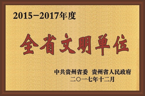 图为:由中共贵州省委、贵州省人民政府颁发的“2015-2017年度全省文明单位”奖牌
