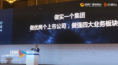 值得注意的是,吕焕斌重点指出将“做实一个集团,做优两个上市公司,做强四大业务板块”。他说到:“‘做实一个集团’即湖南广播影视集团;‘做优两个上市公司’分别是芒果超媒和电广传媒;‘做强四大业务板块’即以湖南卫视为核心的传统媒体板块、以芒果TV为主平台的新媒体板块、以有线网络为支撑的移动板块、以基金为平台的资本运作板块。通过加大企业内部业务和资产的调整力度,推动芒果生态各业务板块的连接、共生,不断孵化培育新的产业增量,为芒果超媒、电广传媒两家上市公司源源不断注入新的市场增值,将湖南广播影视集团打造成主流宣传为核心、主业突出、核心竞争力强、市场占有率高、有规模、有产业链的骨干文化企业,确保新闻立台,保证国有资产保值增值,力争三年内实现‘芒果千亿梦’。”