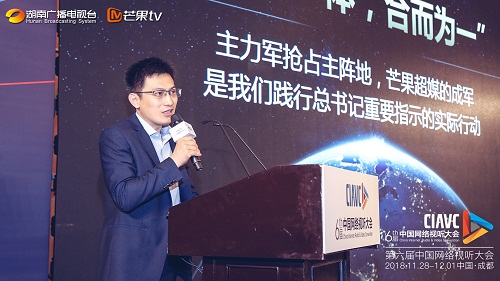 2018年11月30日上午,在第六届中国网络视听大会——“新时代媒体融合发展峰会”上,芒果超媒股份有限公司总经理、芒果TV总裁蔡怀军发表了以《芒果超媒:生态矩阵新引擎,媒体融合主力军》为主题的演讲。