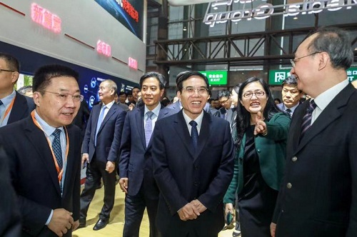中共中央宣传部副部长、国家广播电视总局党组书记、局长聂辰席,国家广播电视总局副局长、党组成员高建民等领导参观展交会(摄影师:蔡强洲)
