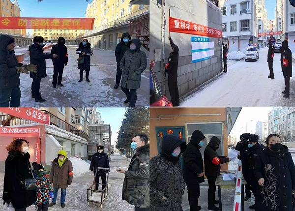 林城有“泼水成冰”的严寒,但病毒似乎不畏惧严寒,在林城不大不小的城市里,如果存在未知感染患者,轻微的人员流动便会使病毒传播、疫情扩散,人员密集场所也会成为病毒传染的乐园。为防止出现人员交叉传染,红旗派出所化整为零,与社区工作人员、小区党员、群众志愿者携手管控辖区内各小区,对辖区内所有小区的人员、车辆进出入情况进行实时登记,并耐心劝返小区外来人员、车辆。向辖区群众宣传普及疫情防控知识。