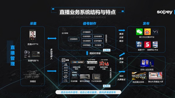 据融合网|dwrh.net获悉,索贝玲珑直播开创了采、编、播全流程的云上制作模式,以云录制、云直播的方式打破传统新闻报道、节目录制的地域限制,具备低延迟、高并发特点,针对多方视频软件在视/音频清晰度、画面稳定不够的痛点,将广电制作与互联网技术应用融合,实现演播室现场与用户实时互动结合,电视大屏和手机小屏的交互,应用于综艺/活动、慢直播、云发布会、直播带货、问政直播、演播室互动直播等多种应用场景。