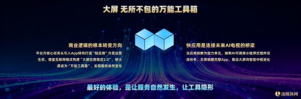 我们正在迎来一个屏共融的新时代。投屏、泛屏、大小屏协同,其核心都是跨屏。跨屏不仅是技术常态,更是“跳出电视做电视”的战略开启。这背后蕴藏着权益转移、价值接续和用户共享的巨大商业机会。