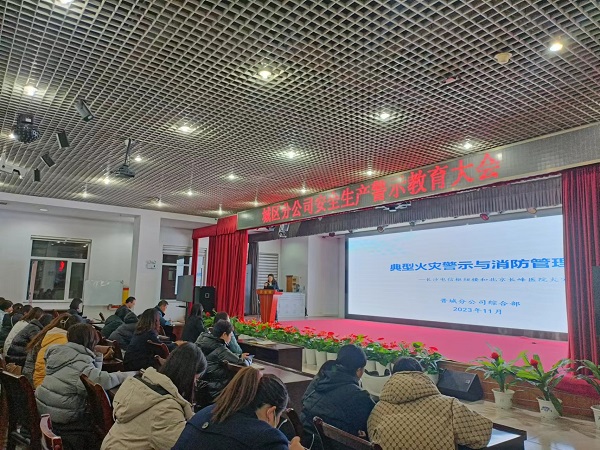 活动期间,邀请中国移动通信集团山西有限公司晋城分公司安全员李娜在全体员工安全生产警示教育大会上,为大家生动形象的讲解了“典型火灾警示与消防管理实务”,再次组织学习了“安全生产十五条措施”,并结合警示教育认真观看了安全教育视频《警钟》。