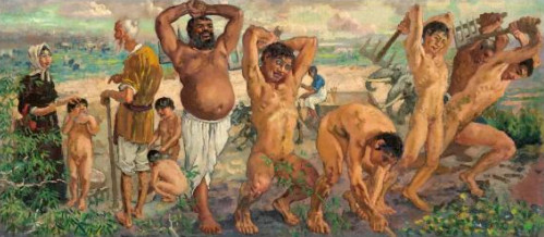 徐悲鸿油画《愚公移山》(尺幅46cm×107.5cm)